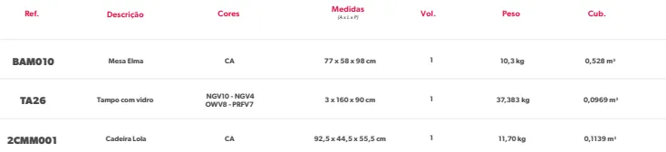 BAM010 Mesa Elma cadeira lola 6 cadeiras